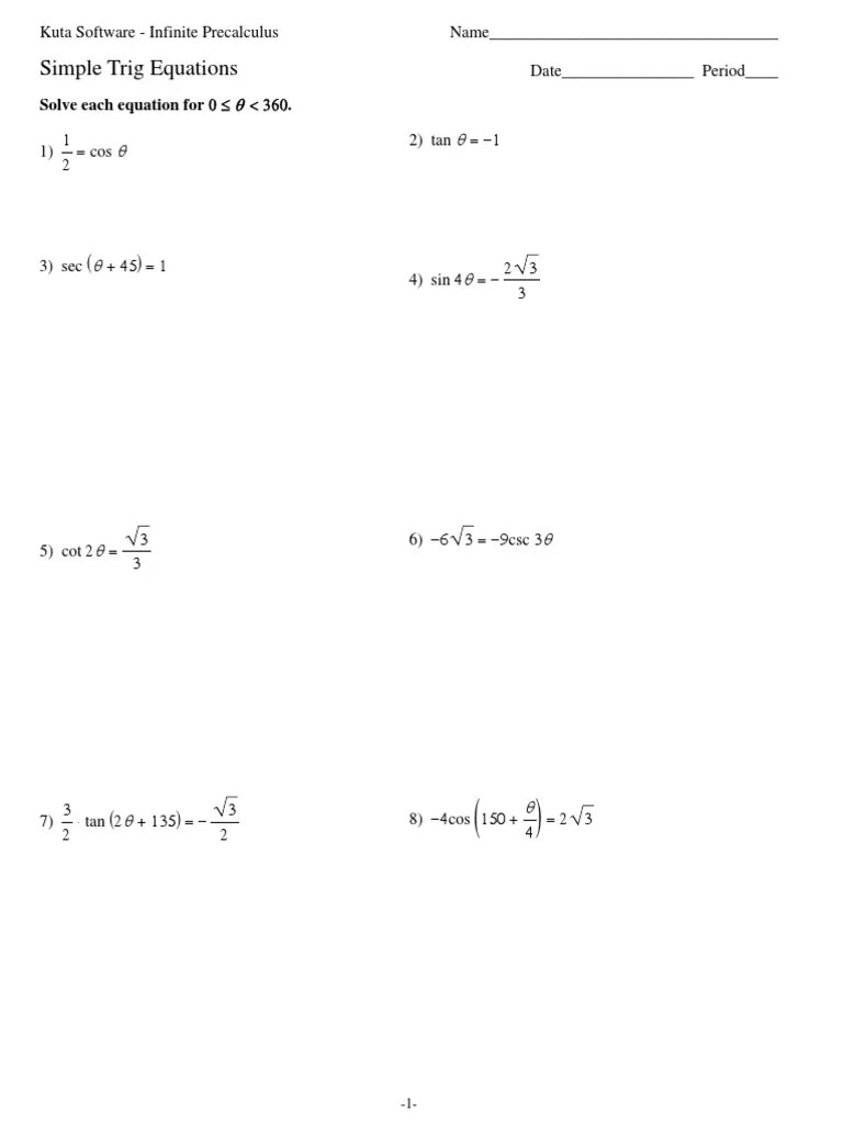 Trigonometric equations worksheet exercise 1 solve the following trigonometric equations: Solve trig equations worksheet awesome solving trigonometric equations she loves math math equation solver, math. Trig equations worksheet 5.1 name: Solve each equation over 0,21 by combining like terms. 1 $sin { x } = 0$ 2 $cos { x } = 0$ 3 $tan { x } = 0$ 4 $sin { x } .
